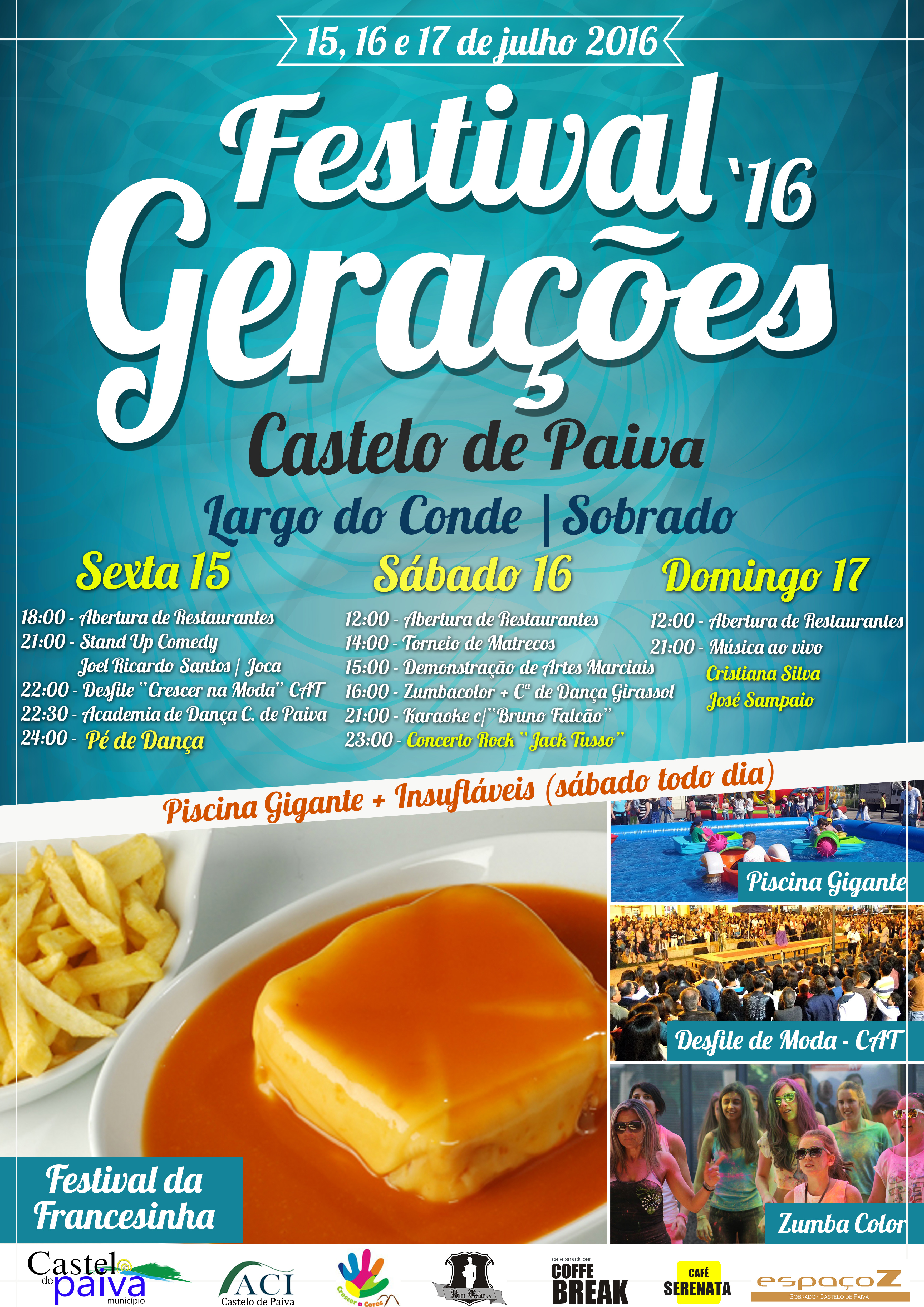 Esta terceira edição do Festival Gerações engloba o Festival da Francesinha, a Festa da Juventude em três dias de festa total, e considerando a relevância que se pretende dar a este evento pioneiro no concelho, que em Castelo de Paiva tem já um impacto significativo junto da população jovem e emigrante, sendo que, a autarquia paivense espera com grande expectativa que a iniciativa volte a ser um grande sucesso e possa atrair muitos visitantes para três dias de grande animação e confraternização.