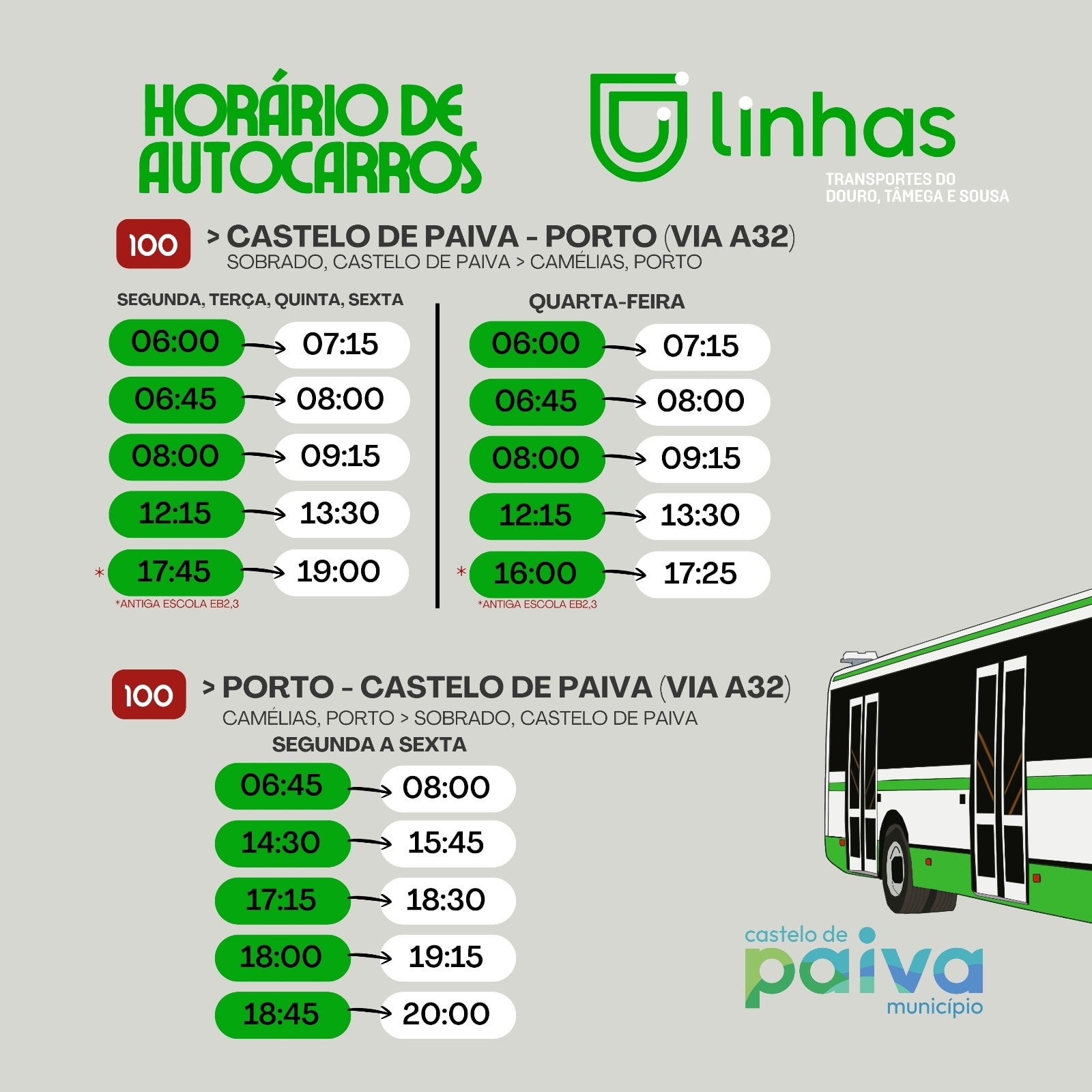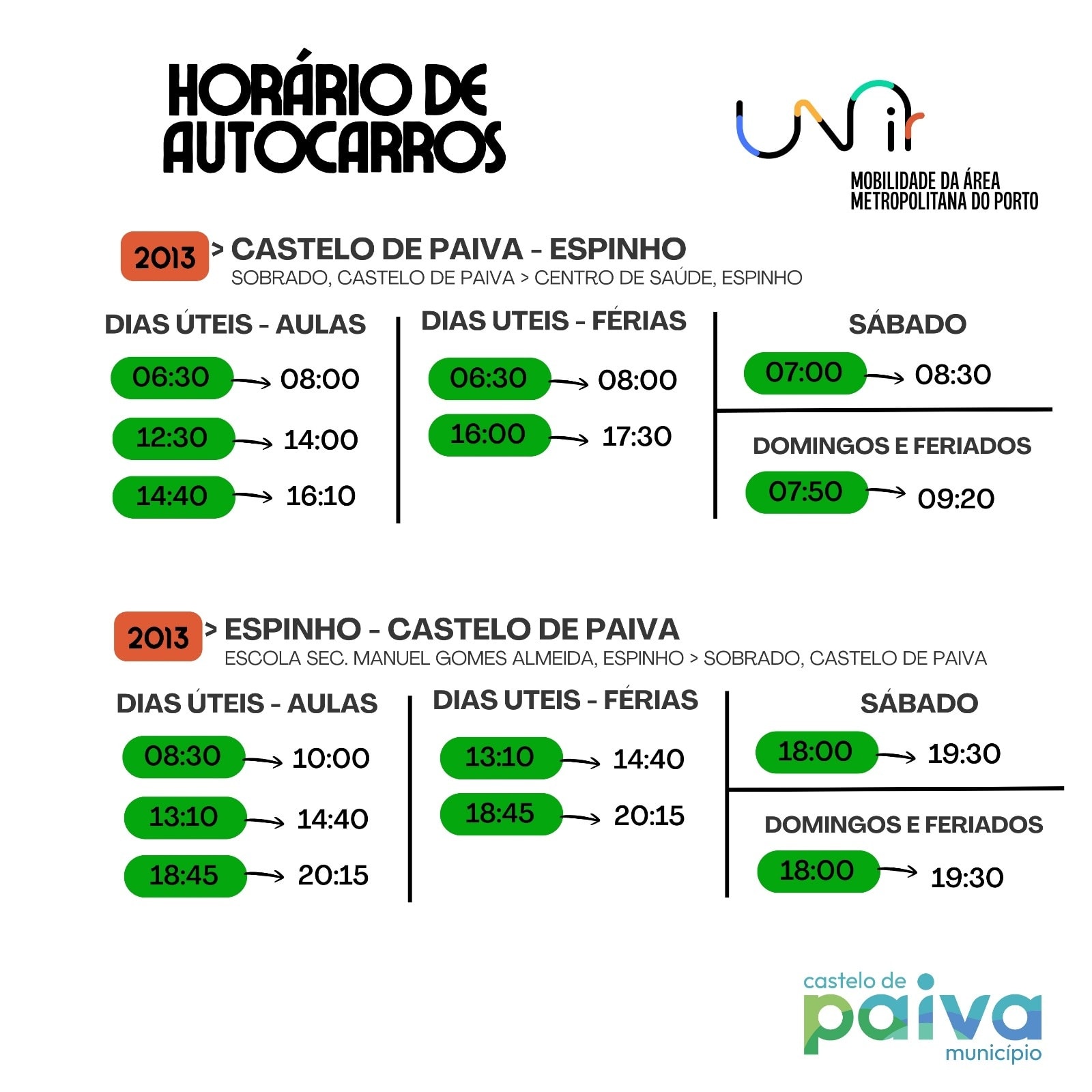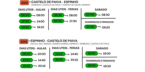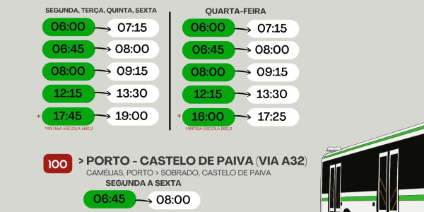 • Os alunos com destino aos Carvalhos dispõem de ligação da Auto Viação Feirense (UNIR), via autoestrada, às 07:30, com partida em Canedo ( Feira ).