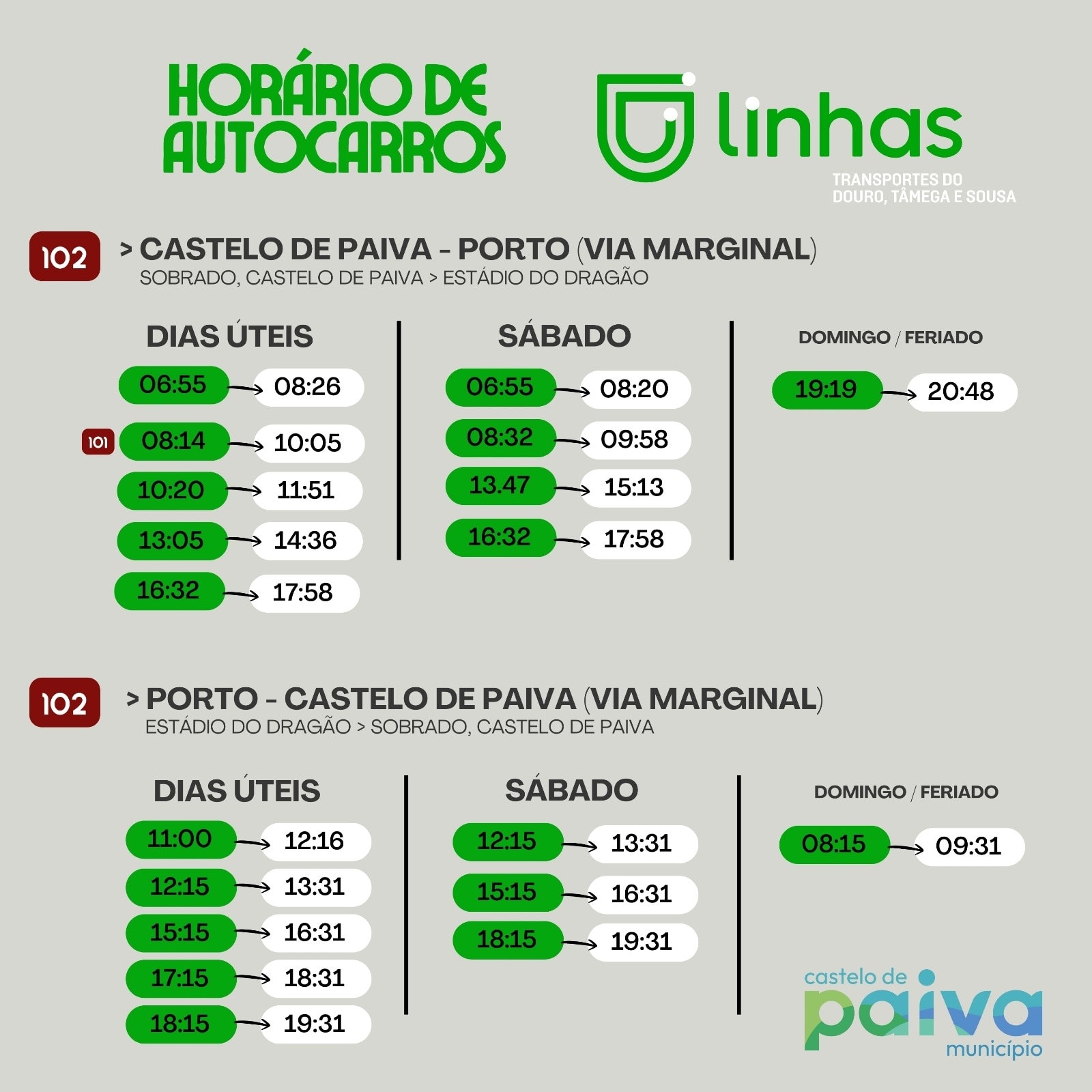 • Esta linha dispõe ainda de várias ligações a Entre-os-Rios, onde depois é possível ligar com outras linhas. Conforme informação no site.