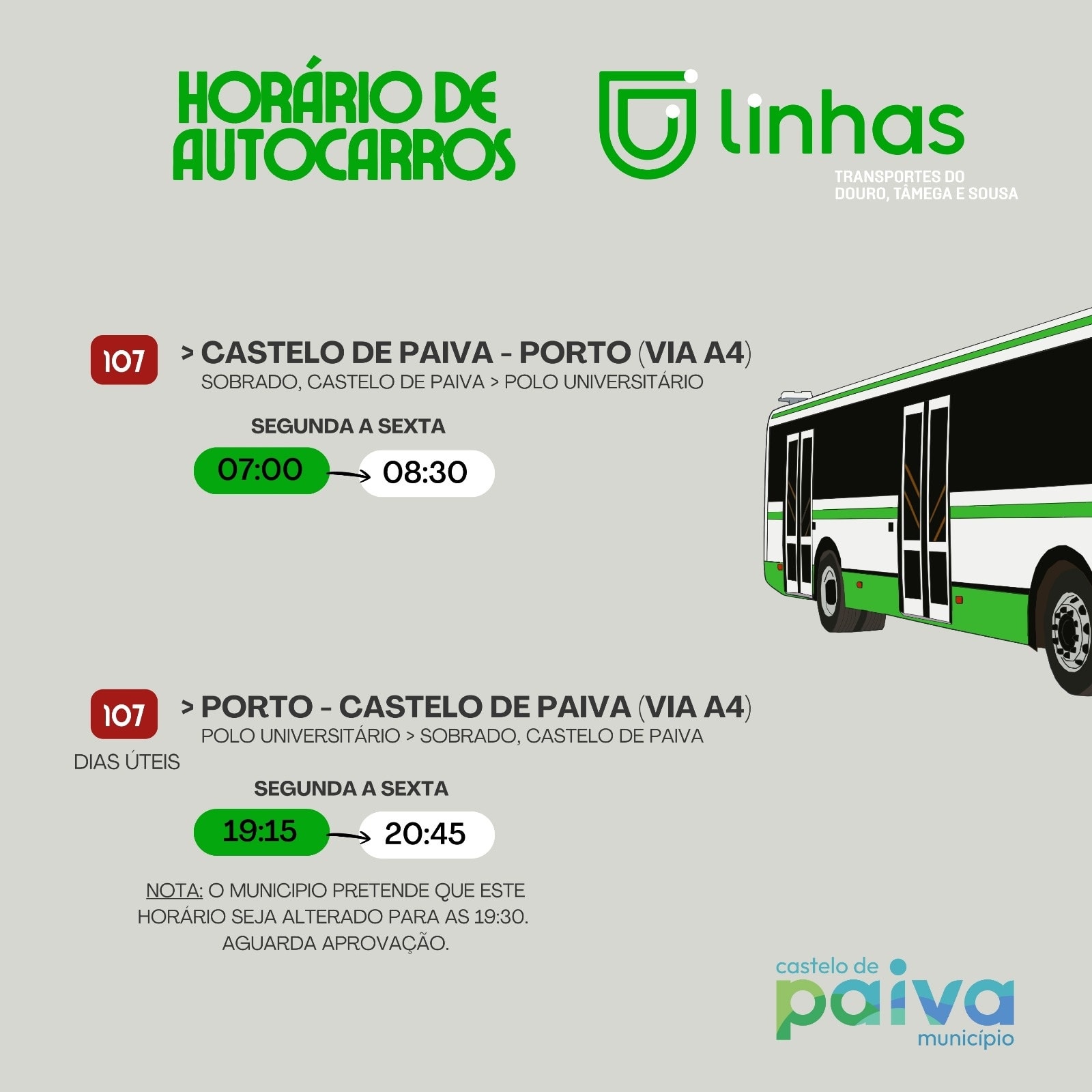 🚍 Recentemente foi feita uma actualização ao serviço de Transportes Públicos – Linhas 3 Rios