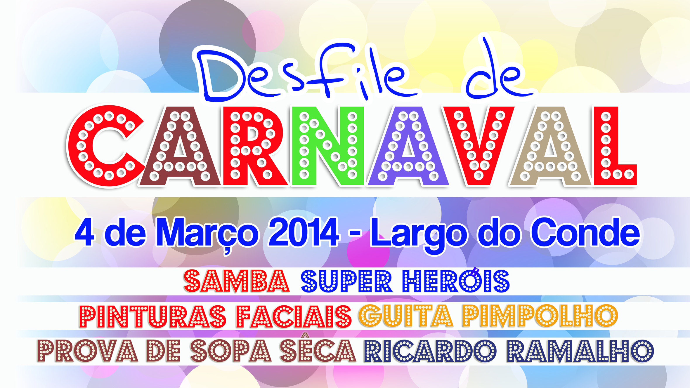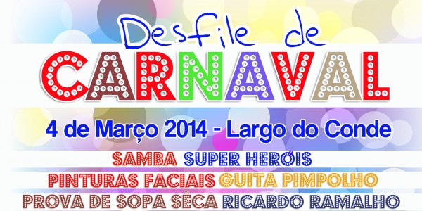 Uma boa oportunidade para sair à rua e participar na folia, entre no espírito festivo, coloque a sua máscara e venha divertir se na companhia dos Super Heróis, de muito Samba entre outras surpresas, habilitando se ainda a prémios fantásticos, alinhe na Prova de Sopa Seca, promovida pelo CENTRUN F , assim como Pinturas faciais, contando também com a presença do Mc Guita Pimpolho.